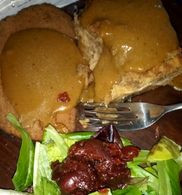 | A Thanksgiving favorite, shown here with homemade vegan turkey coldcut, homemade stuffing, and come canned cranberry sauce. |