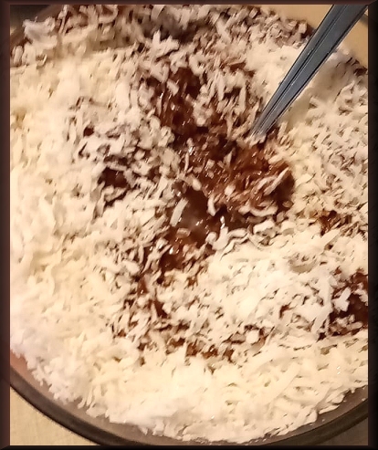 FOR THE CAKE ----I used UNrefined, hence the coconut in the frosting. Pre-heat the oven to 350º. Line 2 x 8 inches round cake pans with parchment paper. Also, you can use a little coconut oil to grease their sides so they don't stick to it. I may have made an error I don't realize, but I don't taste the orange.... and the frosting remained SAUCE. :) That said, I added a LOT of coconut, and saved it. And it IS GOOD CAKE. :) I suppose I could have easily just USED the frosting as a sauce over the cake, and it would be just as good. Perhaps I didn't leave it in the freezer long enough.