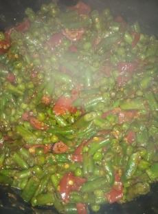 Let it cook for five to six minutes until the peas and beans are lightly tender. Do stir once in between.