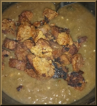 | Slice and fry 3 sausages in 1 tablespoon vegan butter, coconut oil, etc, with smoked paprika, until browned/a little crispy. | |