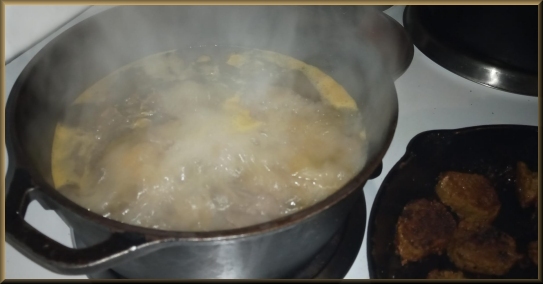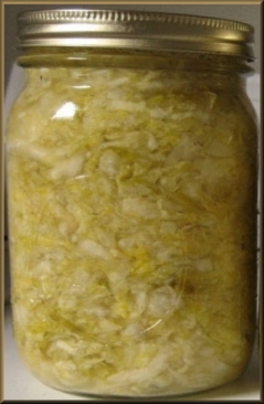 | I started with home-canned cabbage rather than fresh. Fresh is preferable, but I grew mine and canned it. :) Bring to a boil. | |