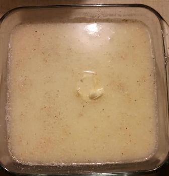 ![]() 1 cup cornmeal, 3 cups water, broth, or vegan milk prepared 9 x 9 inch dish, with vegan butter or garlic spread. Bake at 350 for 60-75 minutes, or desired dryness. |