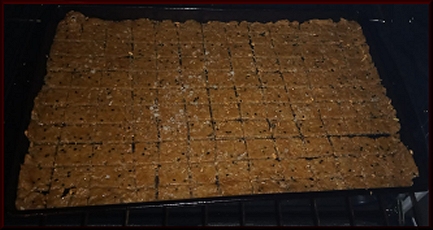 into a thin rectangle on 11" x 13" greased baking sheet.
