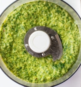 With the food processor running, drizzle in the olive oil and pulse until combined.