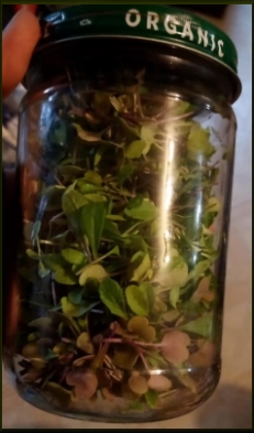 ![]() Arugula microgreens from my garden in bottom of dish. |