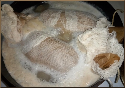 Boil 1 hr 15 min, turning midpoint