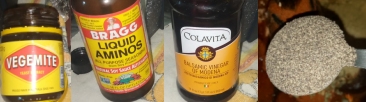 ![]() Marmite (or vegemite), liquid aminos, Balsamic vinegar, Black Pepper | 1 TB each to blender | X | X |