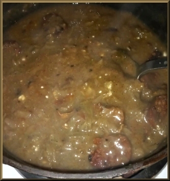 | Combine sausages, cabbage, gravy mixture and simmer to allow flavors to blend. |