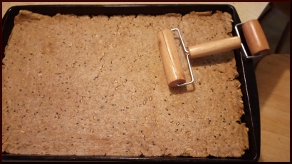 into a thin rectangle on 11" x 13" greased baking sheet.
