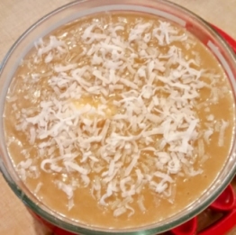 The pudding is Three bananas mashed, two cups of plain fat free coconut milk, a quarter cup of maple syrup, two tablespoon of unrefined coconut oil, two tablespoons of arrowroot or cornstarch And since I already knew I was making it up in cheesecake format, I put in one tablespoon of agar agar and timed my cooking for 2 minutes once it started to boil. I also put 1/4 cup vanilla extract in, as well.