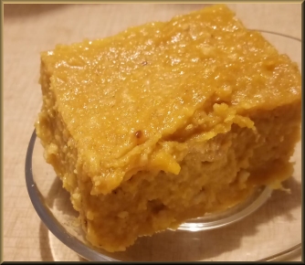 ![]() Cushaw Pie Burfi with aquafaba cream. |