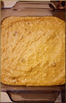 Per 1/9 recipe: Calories 322, Carb 45, Protein: 9, Fat 10, Sodium: 3, Fiber 3