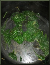 Heat the olive oil and add the spinach along with salt and ground black pepper.
