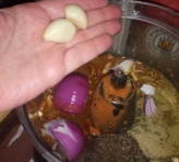 ![]() Two Onions, 5 cloves garlic | ![]() 1 onion, 2 cloves | X | ![]() 1 onion, 3 cloves |
