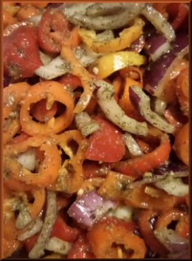 ![]() 2 lb sliced bell peppers 1 roughly chopped red onion 6 tablespoons garlic paste |